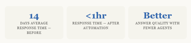Before we introduced the email bot and agent-assisted response system, our SLA the time it took to respond to a customer query was sitting at 14 days. Fourteen. If you emailed our customer service team on a Monday, you might hear back two weeks later. That is not a customer service operation. That is a waiting room with no chairs